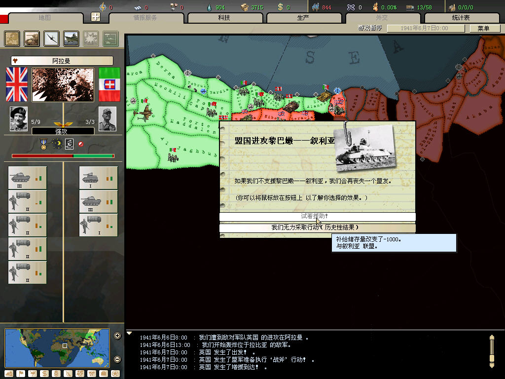 同样的北非战场,我80几个精锐师,还没加事件刷的,被英军赶下海3次。。。。。。