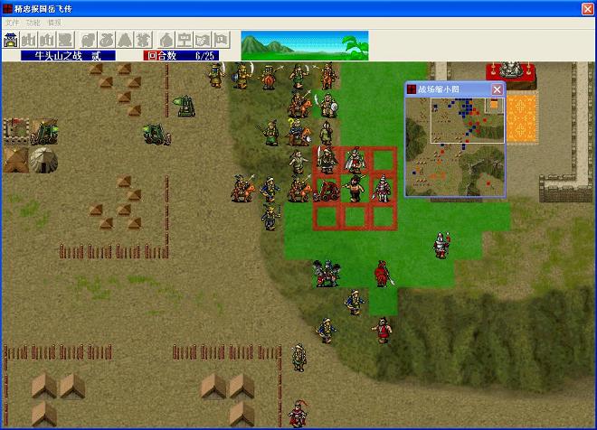 吉青向上城门迂回带走一弓兵,牛皋让出位置给一步兵攻击汤怀,剩余一弓一步斜线无反击攻击王贵