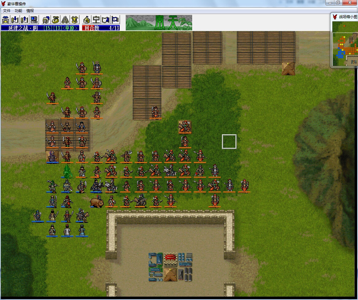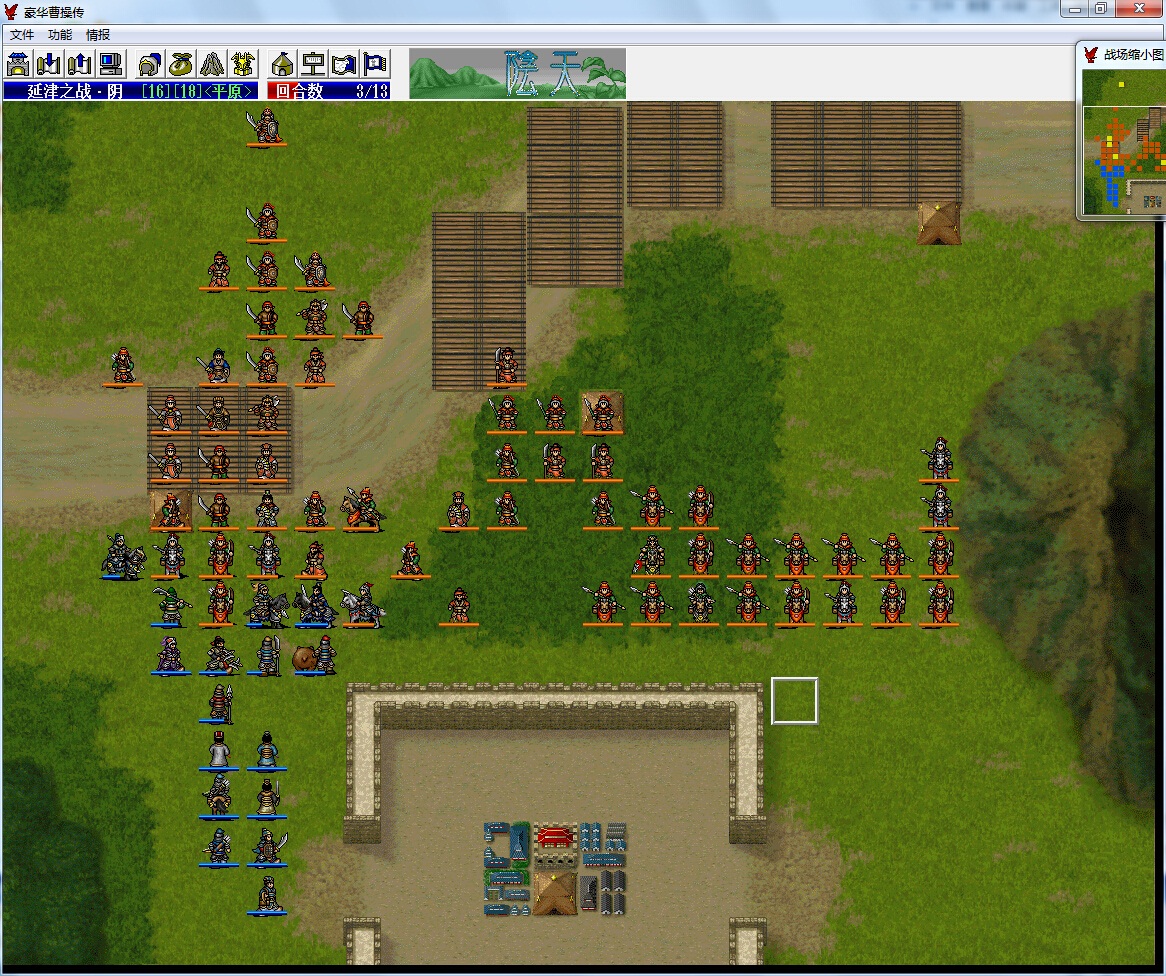 本想尝试出城打的,参考野夫大大或者辞典大大的思路,发现每次输出都是差个位数血量秒杀原来能秒的敌人。无奈尝试守城,不过再想一下没有关羽抢经验也更有助于冲级,说实话我还是第一次守城打延津,本以为13回合时间很充足,打起来才发现没有精神增加BUFF再加上守城的平原地形,很多人输出很无力(比如店货许褚主动攻击白马骑只有52点伤害竟然打不空白马骑的蓝)而且谋士团的输出也差了一个档次,最后还发现郭嘉跟贾诩蓝不够用了。。。
