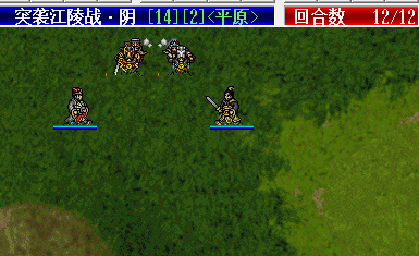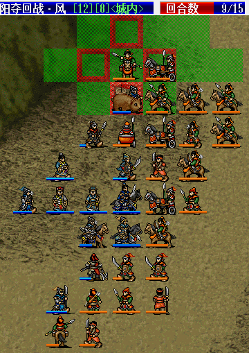 第一回合孙坚后撤,集体往前走一点,小夏侯走到袁绍前面步兵的斜下方把敌人的一个步兵勾引过来砍他(还有个弓兵也会过来射他)敌军阶段黄盖程普撤退。