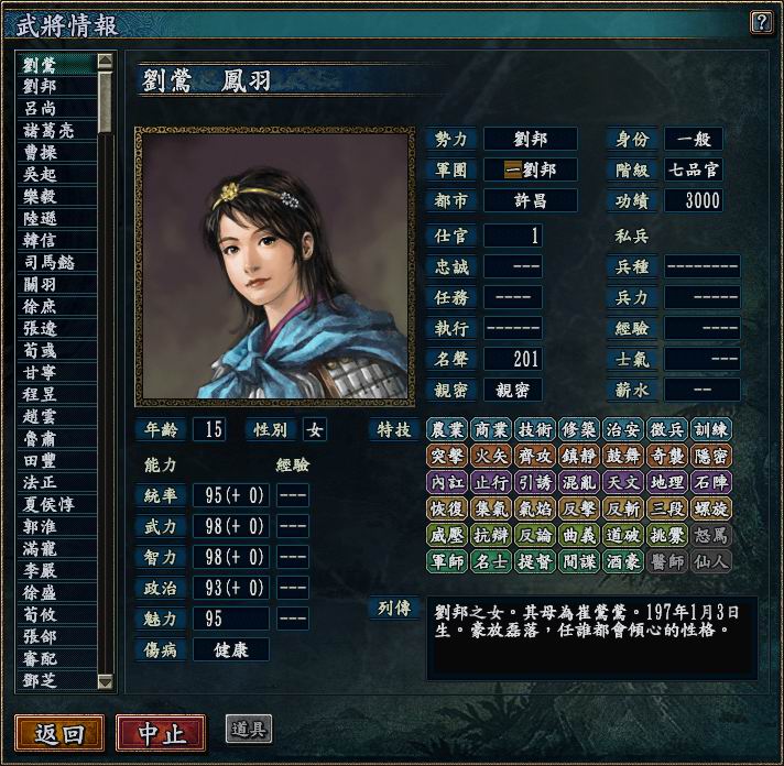 (指导武将不能和主角同城,不是君主,和主角不是父子关系、不是仇敌关系、未袭击过、认识、关系至少为亲密。如果和主角属于不同的势力,那么还要求势力之间的关系正常。状态正常,超过30岁最高的能力超过80,能力和超过300)