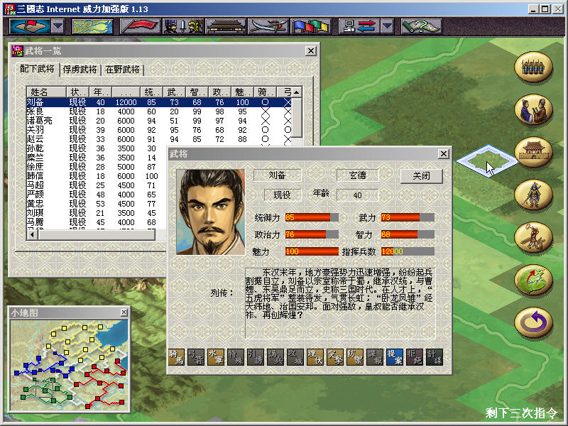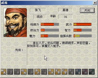 本作还设定了武将与君主的性情,性情不佳的武将在敌军施用驱虎吞狼或武将的援助等外交卡片时易判变,所以不好用。可是即使他个性差,但能力高的武将还是希望您一定拥有。