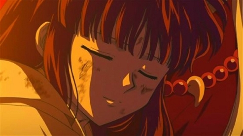 因为桔梗的死去,犬夜叉的灵魂伤痕累累,在第10话《为悲伤所染的花朵》中,吞噬人内心的悲伤作为养分的妖怪花皇,就清楚的看到犬夜叉因为世间最爱的人过世而悲伤的甚至要追随桔梗而去。《恋爱的犀牛》里无论是“忘掉她”还是“我可以”这两段经典台词放这里也都那么贴切,只是都排比的太长,还是用《东邪西毒》里黄药师台词简短些:“当你不能够再拥有的时候,你唯一可以做的就是令自己不要忘记。”