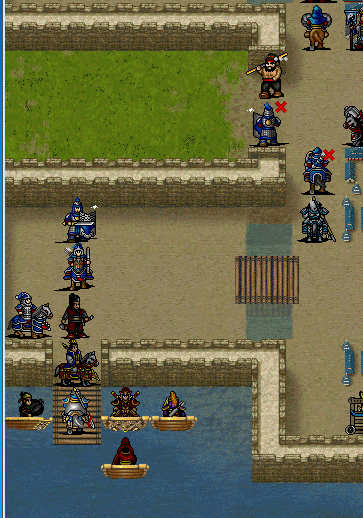 截图并没有反映出城门和吊桥的状态,至少吊桥要处于畅通状态,友军才会全部正常地向城门方向移动,而在移动过程中,通往城门的必经之路若被敌人堵住,也会暂时影响友军移动的AI。所以仅看局部截图无法判定这种情况属于BUG。
