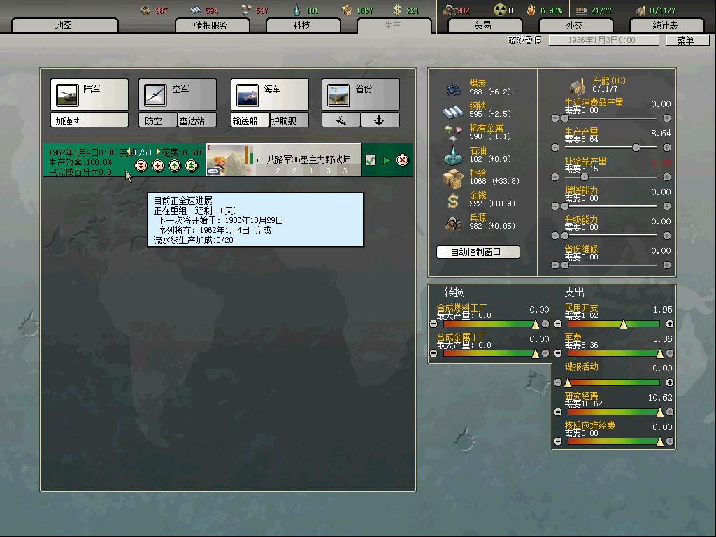 这时没急着搞野战炮,等图纸和3级科技组,人民战争理论过渡(期间工业部长换陆军编制研发型,情报部长换装甲兵研发型),完成后3级科技组出了就36野战炮,否则继续后方补给站过渡