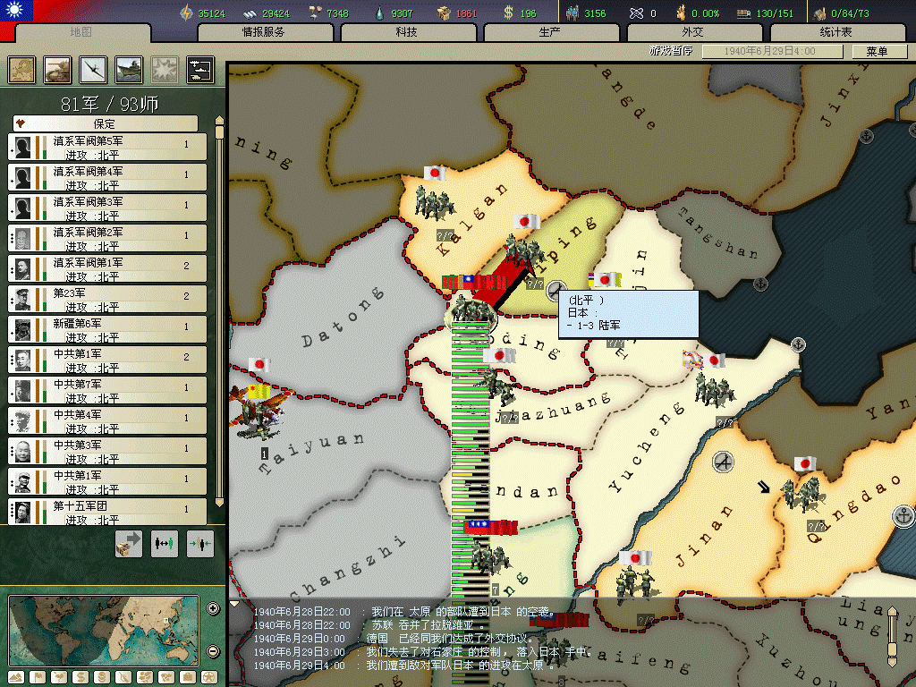 桂系第二个首都)后触发桂系求和事件。对桂系战争麻烦在于为了日后抗战,舍不得围歼桂系部队,如不能触发时间将很头痛。另外好象不能先宣桂系,不然他死活不降,日本和其他军阀很可能一起宣你,我就因为宣了桂系导致日本提早入侵,而且没统一战线。国土沦丧啊