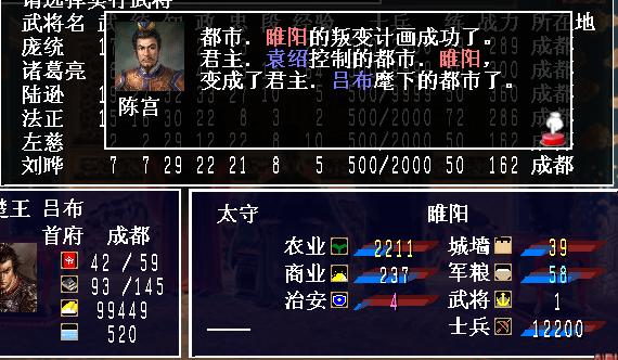 丁氏取中牟。于吉取昌邑。张既取黄县。鲁肃不战来到虎牢关下,面对审配的防守,王粲坑道破坏城墙,王平用计被识破反击败退。鲁肃小攻一场退兵。