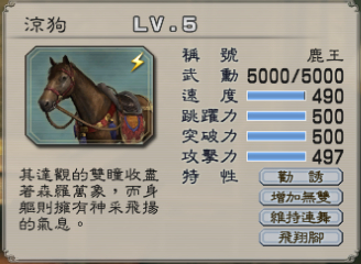 最近,有重新玩起了《真三国无双5》。2013年暑假曾经刷到一匹森神马——栗王(突破脚),接着就没怎么玩。过年那几天又重新开始玩,由于之前刷到马的那个存档丢了,所以重新刷的。三天刷了两匹森神马,一匹鹿王,一匹栗王。育马器我也有,不过我不想用,总想自己刷几匹好马。