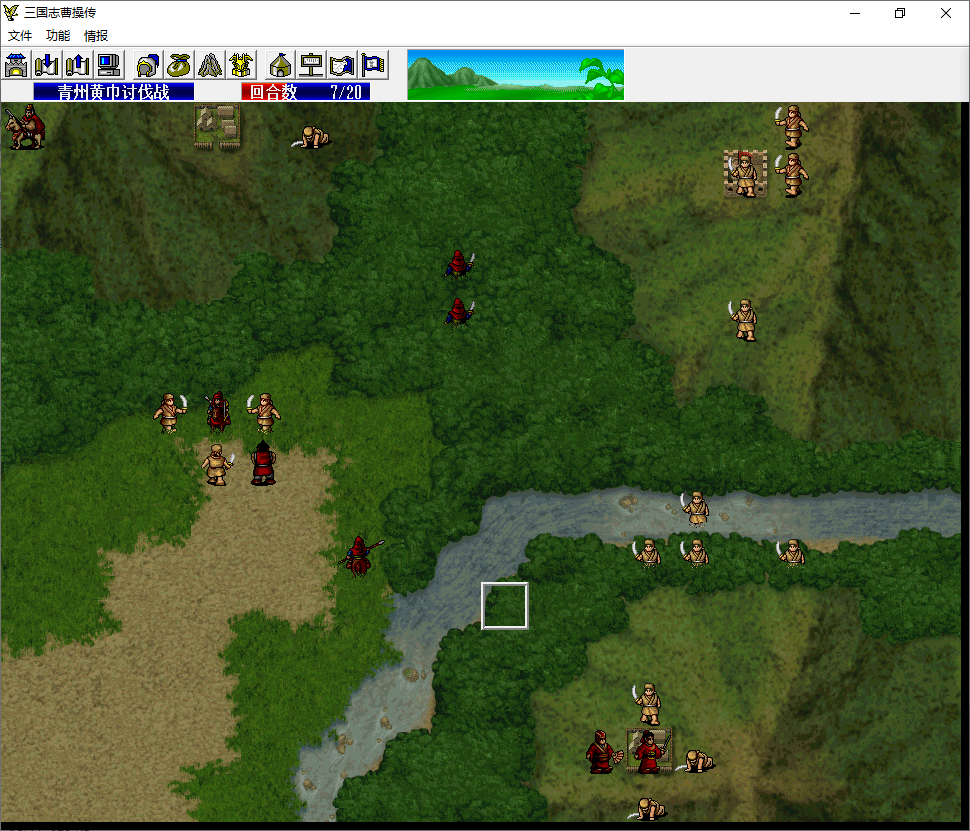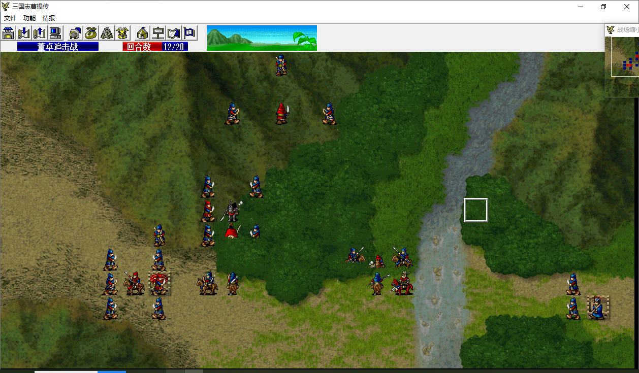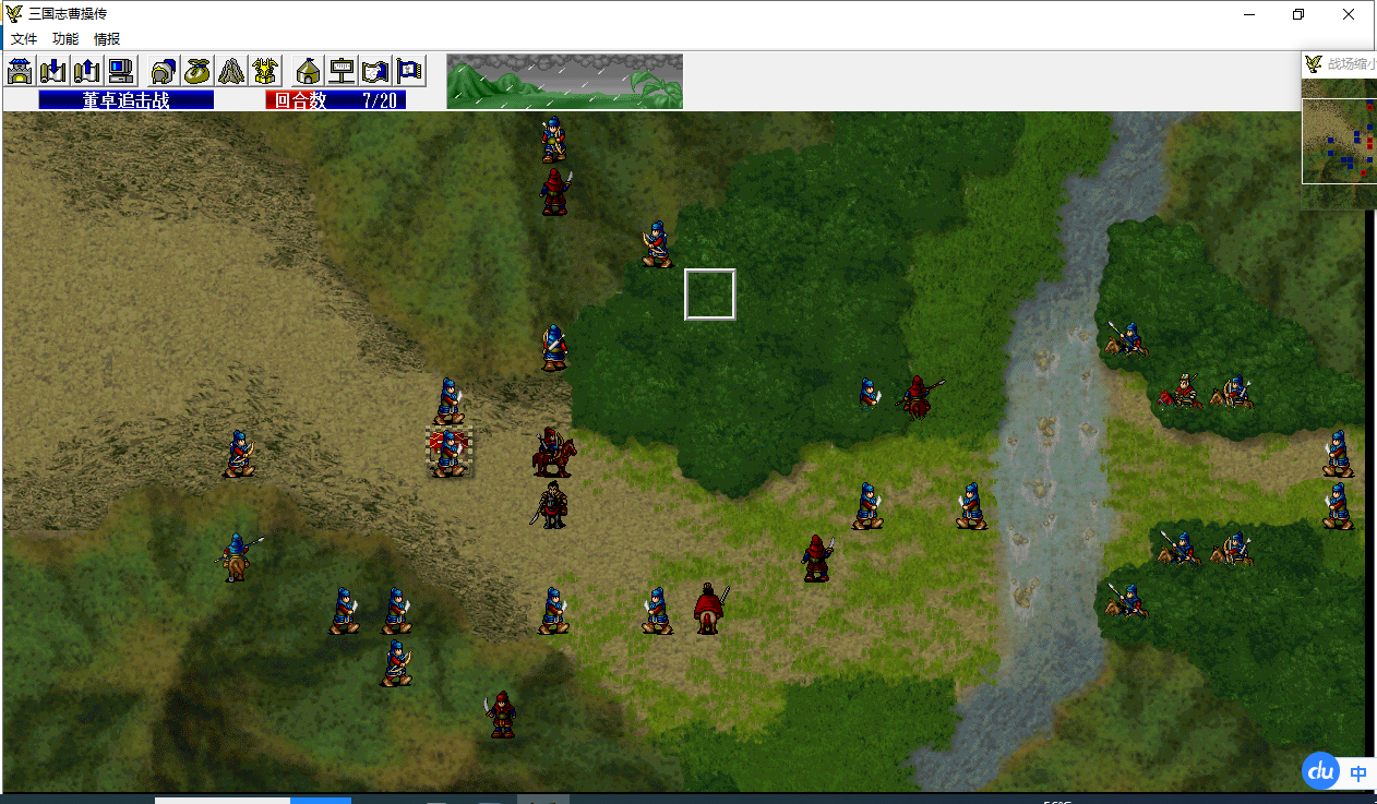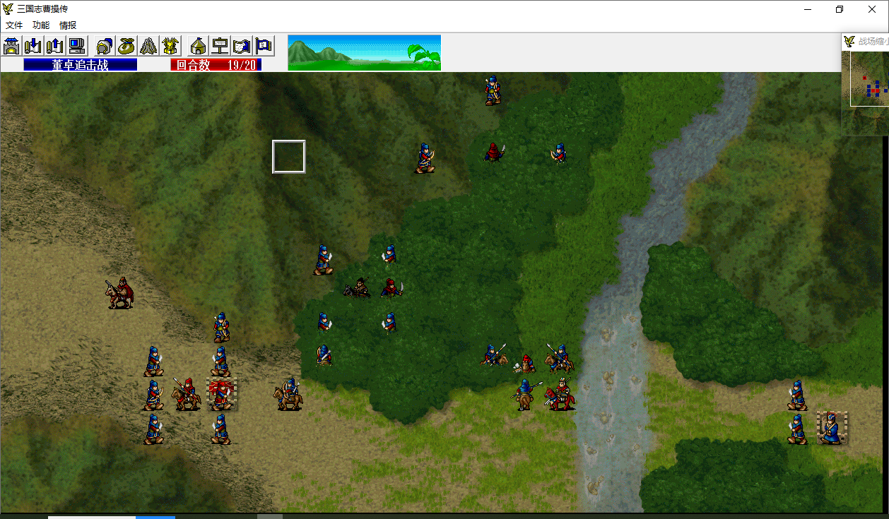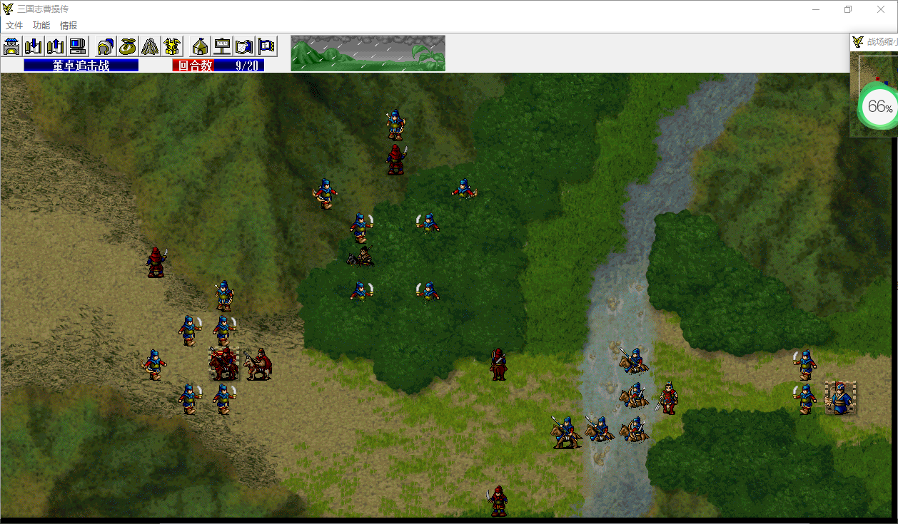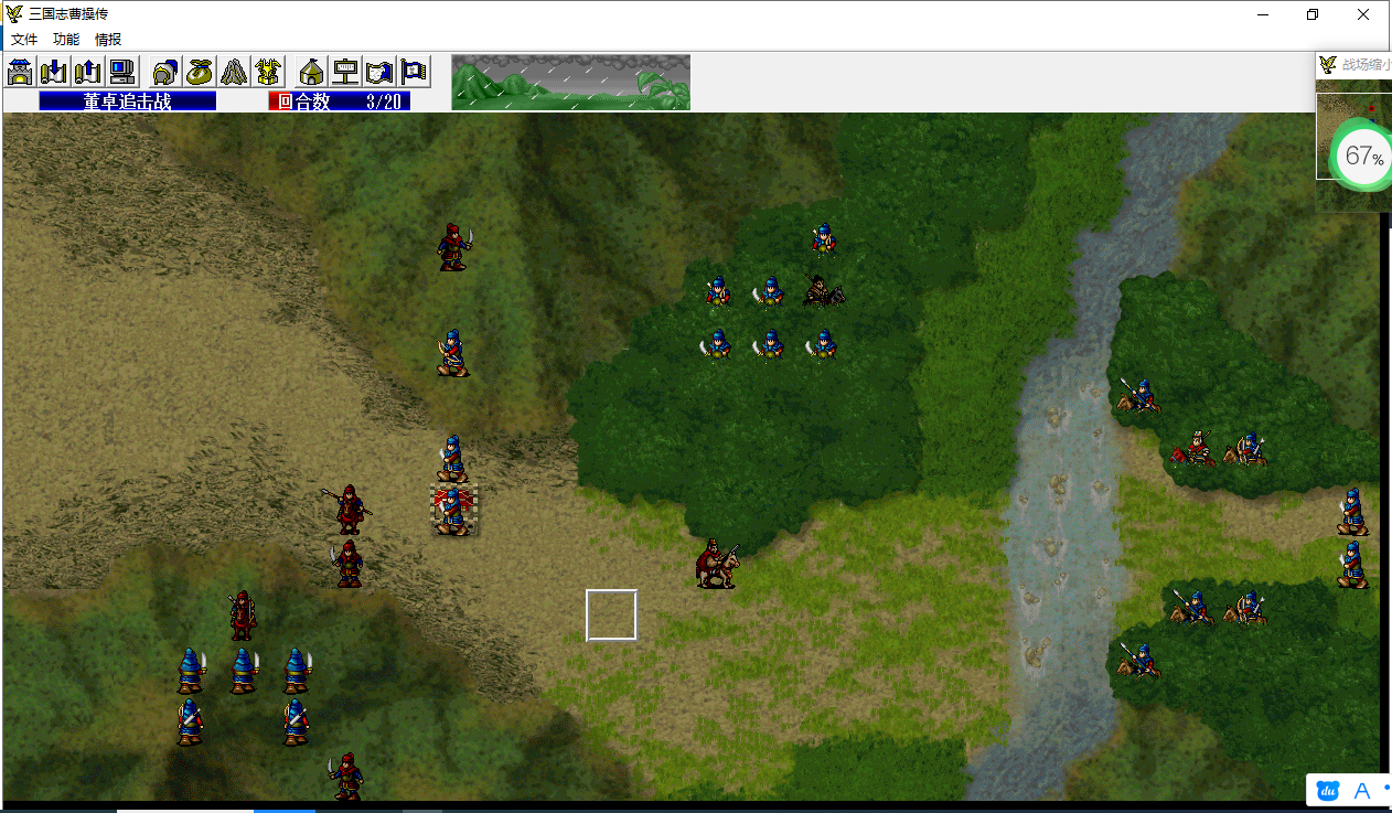 骑兵2移动至程普左侧攻击程普14程普18-3,程普反击39骑兵2 100-61