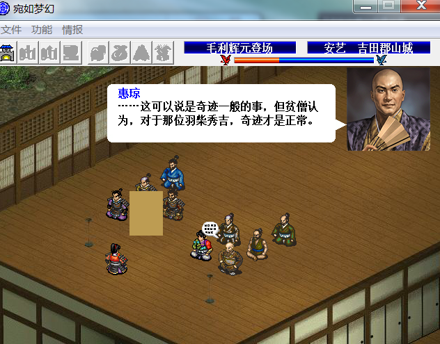 发现一个问题,44关版杂贺征伐战之后我选择了让信长带全军救援北陆,所以就没发生秀吉和柴田争执的剧情,也就没有出现手取川之战,而是直接到了信贵山城之战,但是战后到西征的剧情处秀吉说了这么一句话,这个应该是发生秀吉--柴田争执后才出现才对,如果没出现争执的剧情这段话就不该出现了。另外R剧情中吉川广家的R形象是中国人的形象而不是日本人(目前发现分别出现在“石见的大傻瓜”和“两川”这两个剧情处)。这个意见可能让人觉得有点吹毛求疵的感觉,见谅。