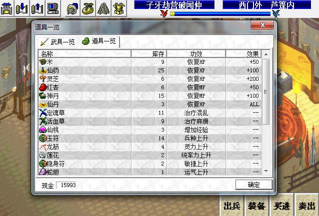 第十三关,没难度,可惜晃雷有点弱,本想留晃雷,利用城里的晃田练下装备,可惜友军的弓手挺厉害,又是优先打骑兵,没办法,看着晃雷和友军玩,飞虎站好位置,混到晃雷残血,飞虎单挑,留一个人负责占城,最后补刀晃雷,最后吐糟下攻略。散宜生的神机妙算,经验加倍的特级需要120以上的SP,等你刷出来,晃雷早凉了。本人努力刷到96,尽力了。。
