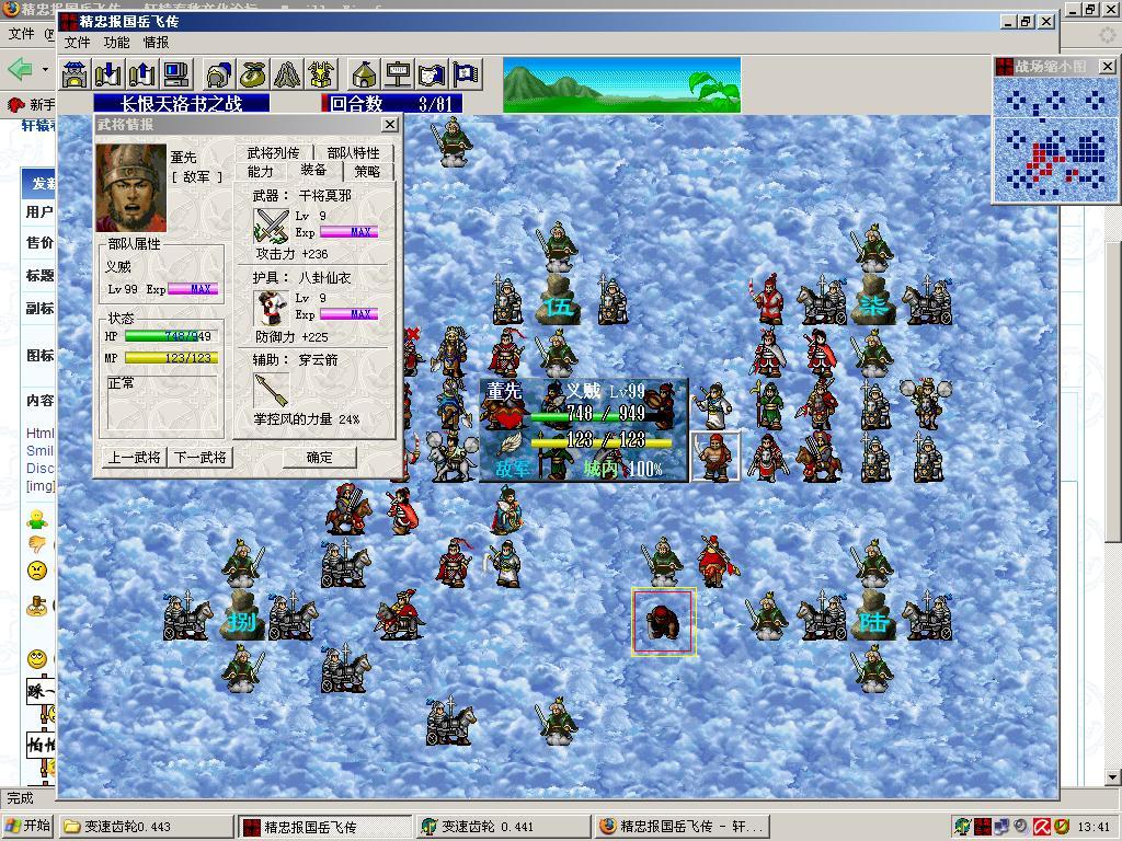 武力果,前期完全放弃沥泉枪和青龙刀,至汝南为止吉大炮练出3个,岳飞王贵合练出3个,收20-23级高宠自带装备卖出2个,洞房1个,牛头1-2吉大炮练出2个。至此董先的2个、岳飞的4个、关铃的5个已经有着落,余化龙20级以后雪藏。前期多买两辆初级的投石车,让吉大炮打人掉血少点,牛头5把敌军堵在营寨外面让吉大炮狂砸,拖够回合数的话又轻松练出2个。收40-43级杨再兴自动带来2个,这期间岳飞再练1个,老余的5个也够了。收52-55级伍尚志自动带来1个,只要打杨幺那几仗再练1个王贵的2个也就出来了。吉青没得吃,因为他价值不如王贵大。