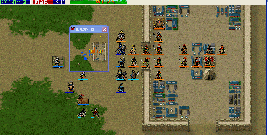 消灭之后用了两个小补给,然后曹操去诱敌,然后后退。这是第九回合,这里可能着急了,因为这次我发现很难坚持到11回合雨天,只好提前想办法勾引张宝了。