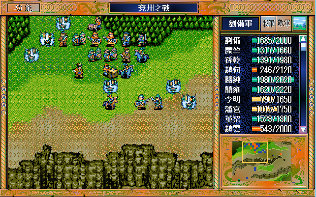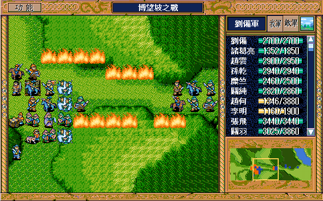 刘备:策略3回合24点,攻击8次、焦热3次、火龙1次56点(6X4+4X8),过关50点,共130点(行动15回合+变兵种1回合+交书2回合);