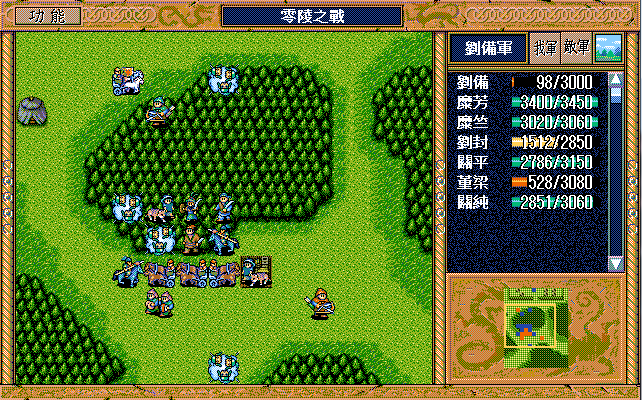 博望坡比江夏的难度确实不遑多让,在定下了周仓多拿反击的基调后,与第三季的情况类似,真正的考验来自于繁杂的计算量——敌军封印期的混乱如何安排,何时清醒,如何用策略,兵力、士气怎样控制等等;敌军策略值、兵力、士气等的前后关联相当大,期间还有韩浩早升级与晚升级的变数。熬了大半个月,处处是坑,坑坑不同,反复填坑的同时还要经历一遍又一遍的S/L难点,总算是接近尾声了。先预告一下:在周仓高3级而且被主要照顾的情况下,总反击量比第三季又提升了12次;诸葛亮一出道就要开始漫漫“委屈”之路了;另外南阳9回合要改晴天,让李典的假情报换成火龙,少拿8点经验。现在还有少许不影响大局、但能锦上添花的工作完成了,就会贴出从未有过的赵云变军乐下的另类博望坡,先发几张图吧。