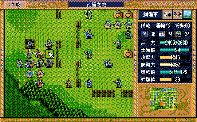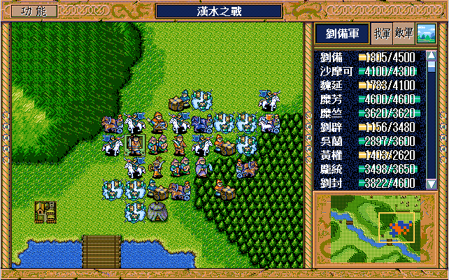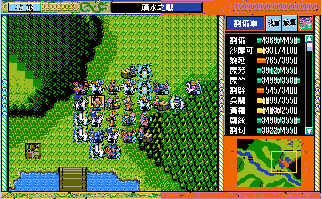 敌 步兵1(清醒)开始火龙沙摩可,曹彰上、骑兵9左攻击刘备。