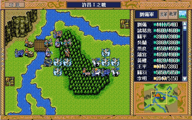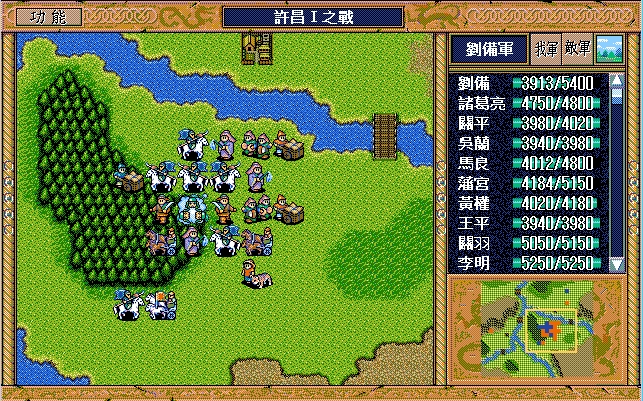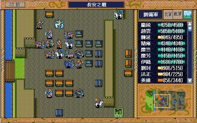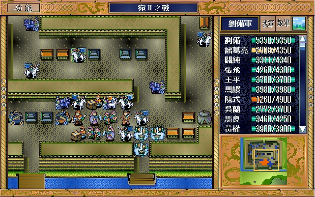 关羽、藩宫、庞统进许昌II时不需要9X——关羽第一回合就能用策略;藩宫第一回合必须交马给关羽,否则影响关羽的行进节奏,藩宫第二回合可以在庞统的帮助下吃李典;庞统为了节省策略值,第一回合可以休息。因此许昌II开始只要诸葛亮和关平的9X就够了。