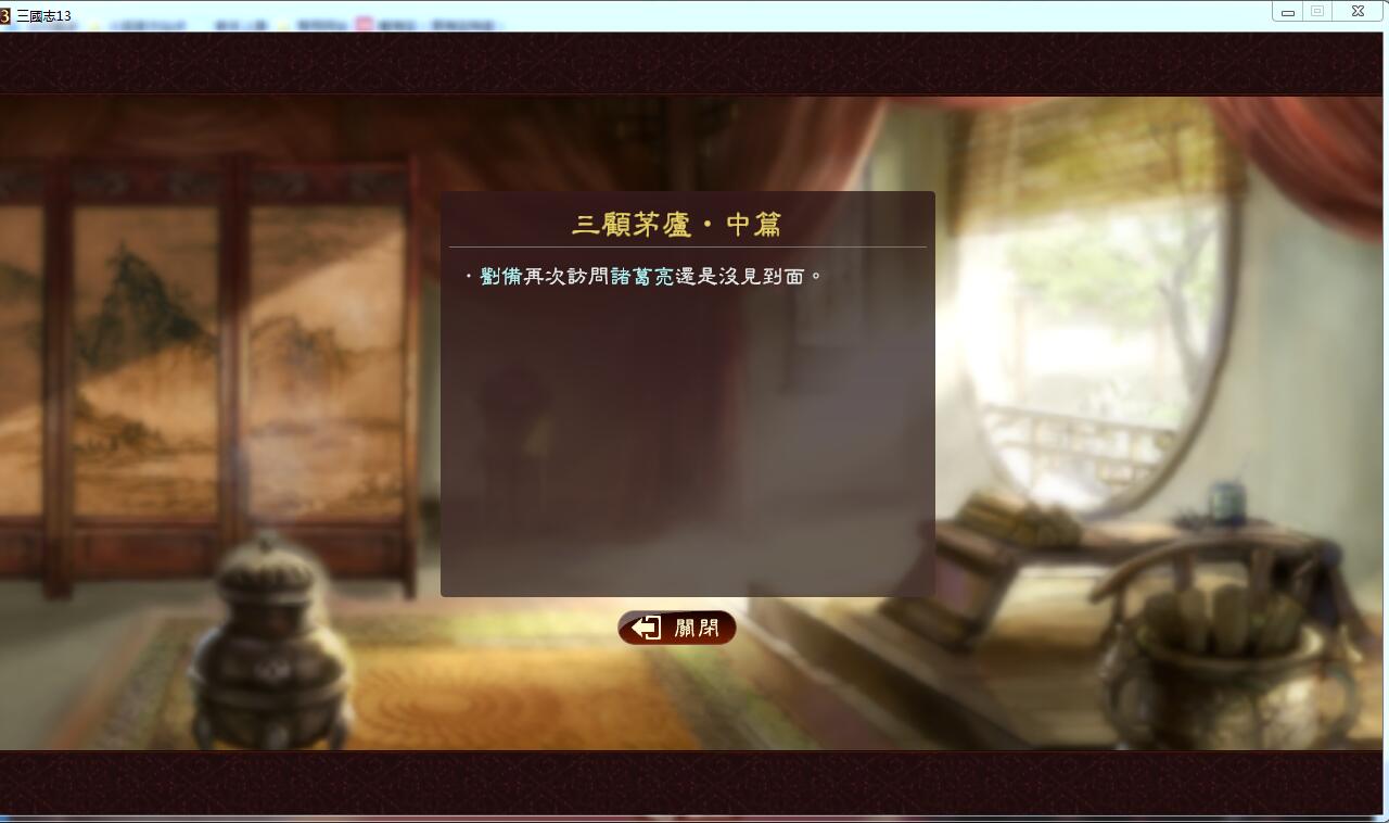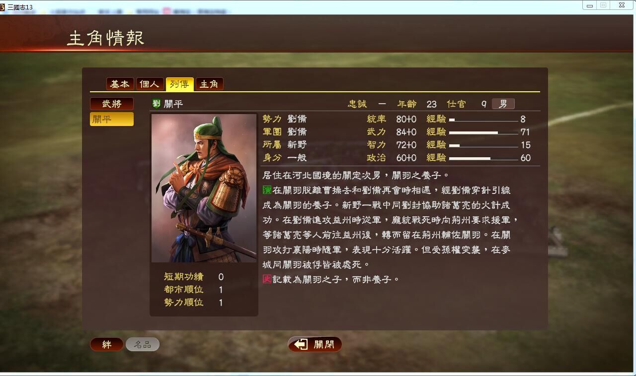标题: 蜀汉第一神将关平--207三顾上级, 开个三国13战报