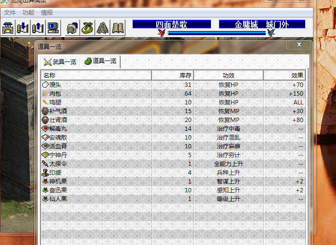 潼关征伐战战后果子满足每种果子大于等于10个,但是金墉城撤退战开战时敏捷果没有扣光,PS:神机果和仙人果是买装备给的各一个