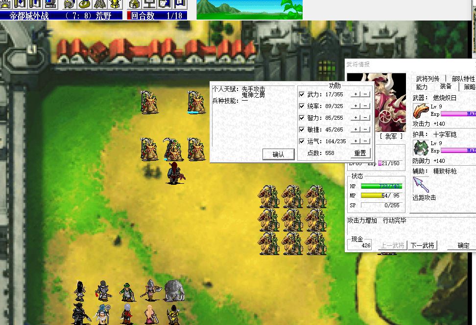 更新后打完了,这次有功勋系统很赞,人物可以“完美培养”了。不过发现一個大问题,就是帝都城外战战前准备转了职的主角个人天赋明明有减轻策略50%,入关后任何一行动后选择是否发动梅姐和帕梅拉特技后那个天赋消失了,而且是永远消失,选哪个都会如此。其他的沒啥大問題。期待樓主下次更新。