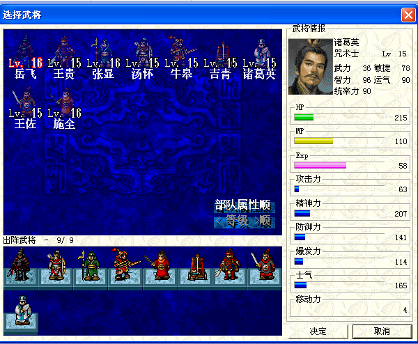 战前等级:岳飞、汤怀、张显、王贵、诸葛英均为3级