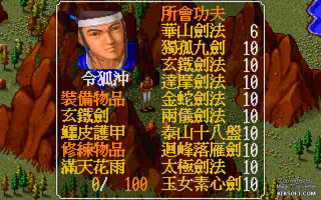 偶从来不考虑通关速度,偶扁老顽童扁了3个星期,终于把能带的人都练到30级了,其中令狐练满了10种10级剑法,王MM的普通攻击、石破天的罗汉拳、张无几的武当长拳也都练到了10级,哈哈