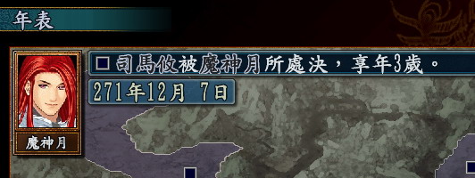 其实...主要是...我魔无影...按了个自动和电脑打..结果...被捉到了...被曹休那杀了....魔神月..是我给自己设置的儿子~.一直吧曹操家族杀光光了....