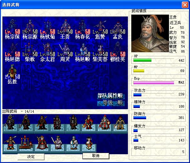 选择王贵,孟良,杨宗源和杨宗保一起出现在地图中央