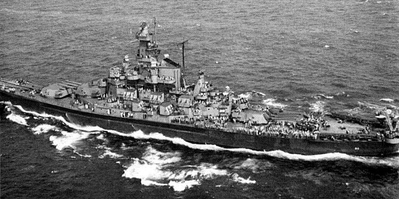 新泽西号战列舰于1942年12月7日珍珠港事件一周年下水,当时美国各大报纸都对下水仪式进行了报道,1944年初加入太平洋舰队,成为第5舰队斯普鲁恩斯和第3舰队哈尔西的旗舰,2月协同米切尔中将的58特混编队封锁特鲁克港,击沉了日本驱逐舰舞风号,6月炮击塞班岛和提尼安岛,随后参加了马里亚纳海战,同年10月参加了莱特湾大海战,1944年12月23日遭到己方驱逐舰误射一发127毫米炮弹,1945年3月炮击冲绳岛,同年4月返回美国本土维修直到终战。1949年编入预备役,朝鲜战争爆发后恢复现役,1958年再次编入预备役,1968年再次恢复现役,参加了对越南沿海的炮击,1969年底再次退役,1982年完成现代化改装后恢复现役,1991年再次退役,最后新泽西号从现役军舰名单中除名并抵达新泽西州卡姆登,成为一座浮动博物馆
