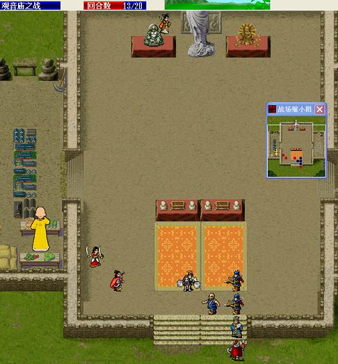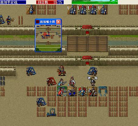 当区域(0,18)-(27,27)也就是下半个战场的友军数小于3时,粮草队才向(24,6)-(25,7)的牛头山上移动,同时,左下方的敌军援军出现。