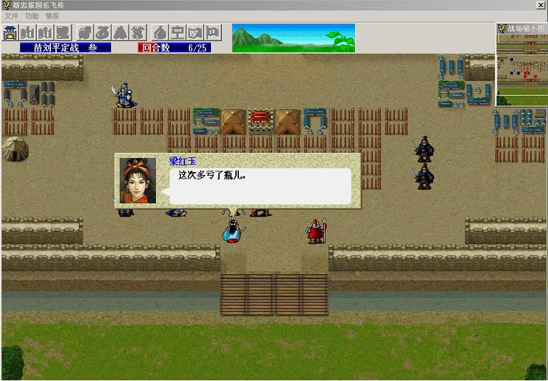 问题:银瓶先和敌军将领会面,部分敌军撤退,然后梁红玉和银瓶见面,梁说“这次多亏了瓶儿。”该对话框不断弹出。点击鼠标很多下后,终于可以正常操作,但操作一次之后又弹出。敌军移动也会弹出。将银瓶和梁红玉分开后,不再弹出对话框。但如果两人再次接近,对话框又弹出。如图所示。梁上方是银瓶(骑兵),斜上是牛皋。