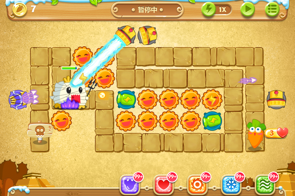 虽然萝卜只有3条命,过关还是没什么难度