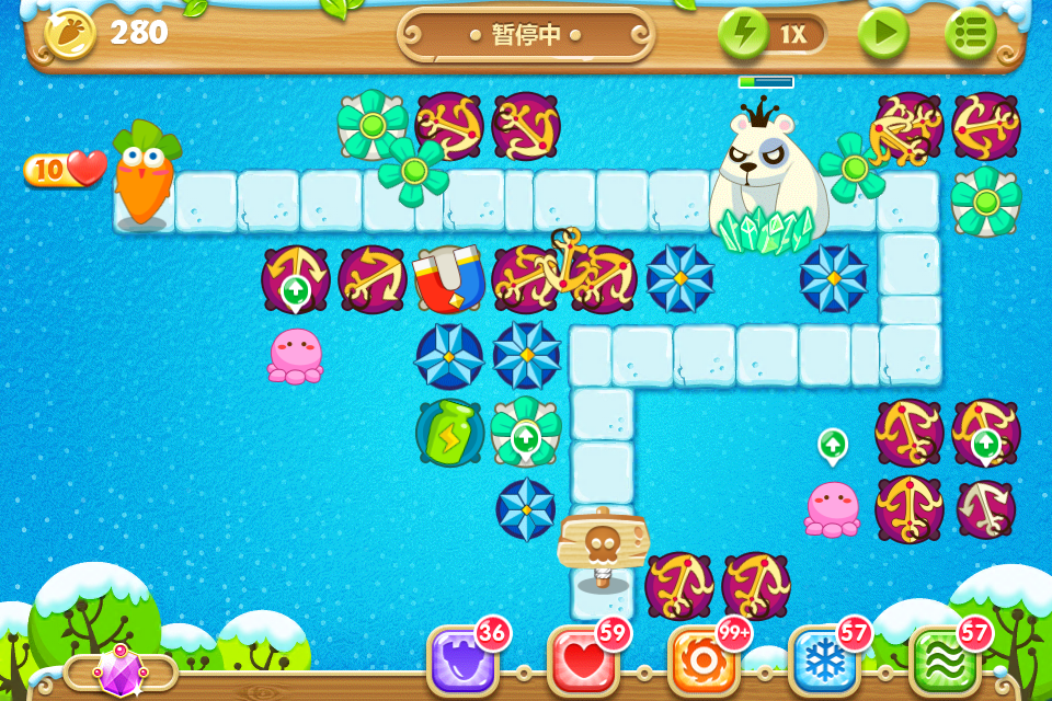水晶萝卜难度:2星,200秒清除全部道具有些难度