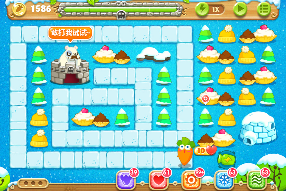 水晶萝卜难度:3星,180秒全清道具有点难度