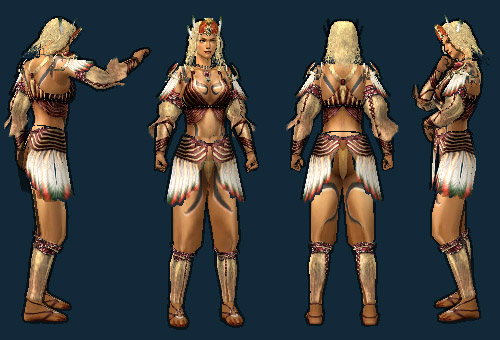 另外,修改了裙子的长度和腿部比例,强化了肩膀护甲的大小,还有胸部的修改。另外注意背部和以前发的贴图的区别……呵呵。