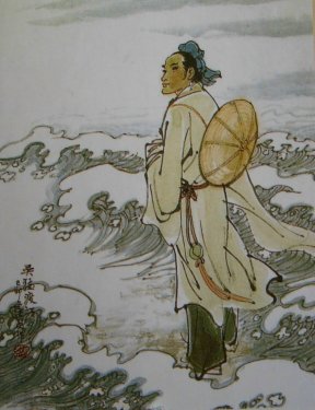 曹娥的父亲曹盱是一位巫祝,因此经常需要划船到江中却做一些迎神的工作。