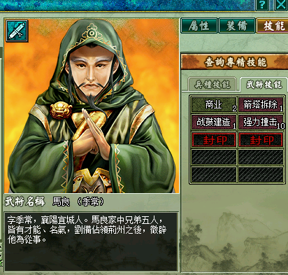 介绍与评价:与同为65级将的魏国曹植相比,马谡就是一个渣,缺乏强力的群体法术是致命伤,好在这货是宝殿将,可以集邮,留着守仓库吧。