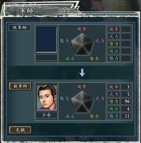 刚测试了一下,将少帝改为普通武将来游戏,除了在武将列表中不能查看少帝的资料,和中介义兄弟时不能选择少帝以外,其余工作都跟普通武将一样可以参加。需要编辑少帝的话,只能用修改器了。下面截了一些图片可以给楼主参考: