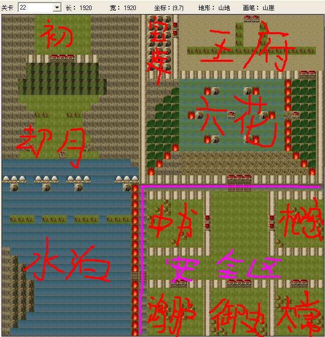 本稿主要是调整了安全区的位置,之所以这么调整,是因为某猫发现第一稿中有个致命的问题,那就是只有破了水泊12个家伙拦路,才能进安全区