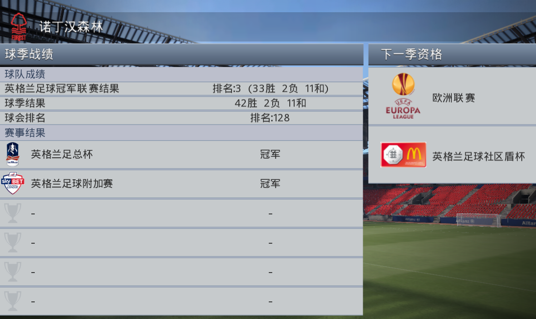 故事的时间从0405赛季变成了1415赛季,主角依然是托尼唐恩教练,不过因为贝尔已成名,阿金费耶夫也老了。由森林传奇名将皮尔斯和希尔顿入替,青年队全部由《冠军教父》书中森林队员组成。
