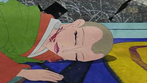 《怪-化猫》(モノノ怪)就是一部魔幻题材的动漫,浮世绘风格浓艳色彩的画风让人一看就那么特别,每一个静祯几乎都是一幅和风绘屏。纵观整个故事的安排,画面和叙述手法都相当复杂,比如从一开始就有着预言的提示,作为背景的画屏图案就是整个故事的缩影。比如结尾最后一幕,佐佐木兵卫的恐惧再次钻入了眼球,又一个循环在开始,等等细节都是耐人寻味的安排。《怪-化猫》中的几个神怪故事,其中一部「海坊主」相当的有意思,要知道真话假话,要知道真心违心,里面出场的一个名为“海座头”的妖怪就实用无比。