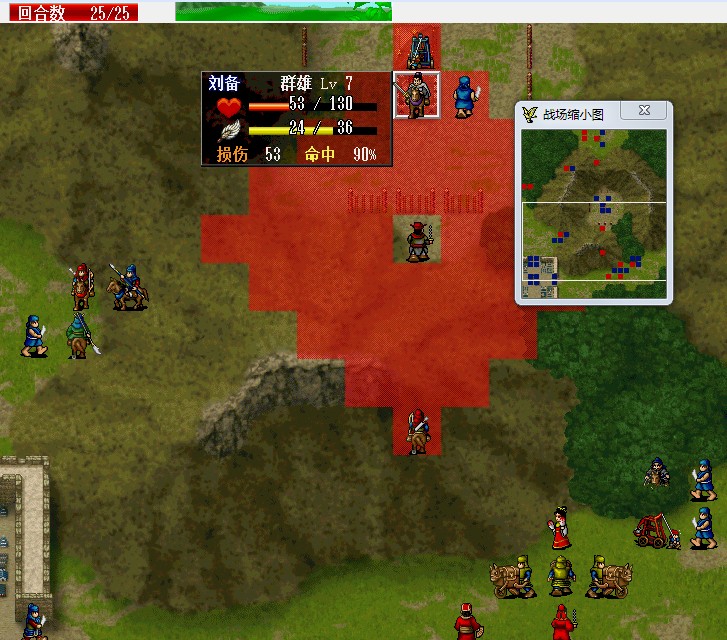 五、赤壁二:1个7级,4个5级,27个1级小兵。这关若直接杀诸葛亮,会得到128点经验必定导致升级,所以只能选择另外一个隐藏胜利条件,将敌军杀剩至8人。