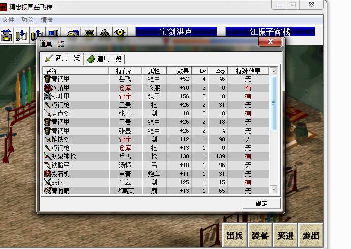 7.除了玉砌连环甲、乱柳谈兵(可能)外,不放弃任何一件宝物,并且,将所有宝物升到最高级。