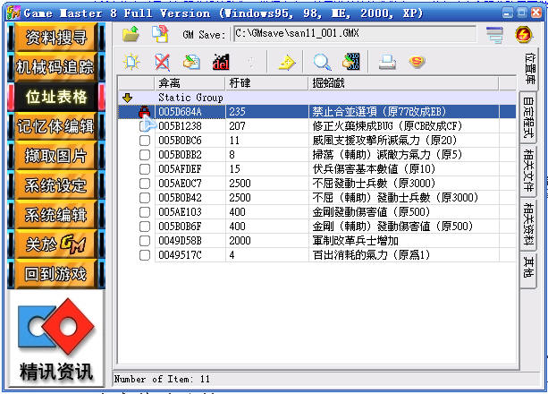 另外,很多人讨厌鬼门,我也是,但是禁用又可惜,所以作了一些修改,把鬼门攻击范围改成1,相当于道士专用版旋风,想回复原来的范围,请添加鬼谋特技。