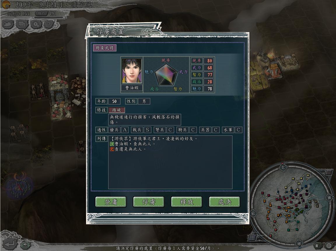 在影子威逼(如果不跟我走就半夜来报上次单挑被打成重伤之仇)和利诱(我家好吃好喝好女人)之下,吴佐思答应投靠到凌子风军下了