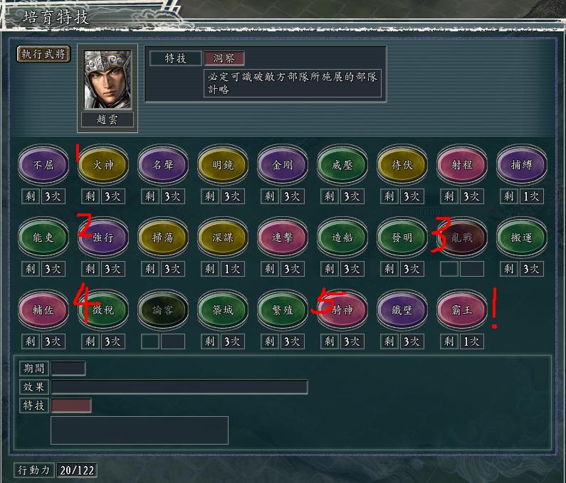 如图:开局得火神,骑神,强行,征收,乱战,用修改器改多一个仁政出来后,霸王消失了...