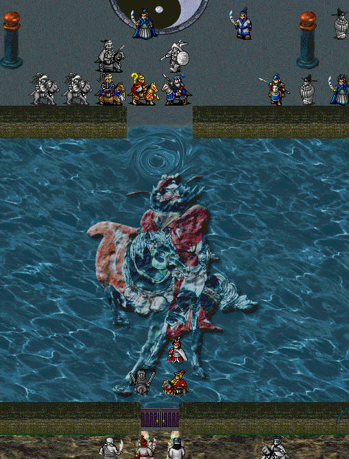 2.用我的存档的朋友注意,因为我前面没有给孟邦杰、董先印绶(上次玩时,欧阳他们的级别不随董先他们),王横和欧阳的移动力比正常情况少1,第1回合王横差一步,拿不到左边的宝物库的东西。我在第1回合时让张保给了欧阳印绶,王横给了自己印绶,保证本关后面打法正常。计划最后让配乌鸦马或火龙驹的的岳云回来拿。