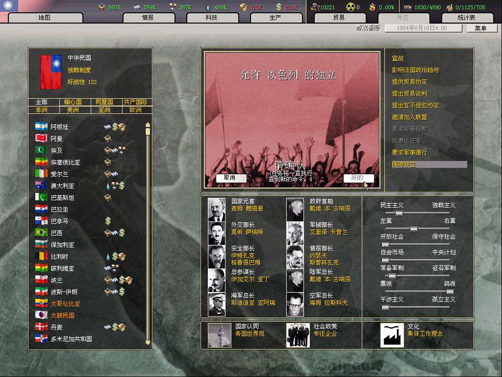 鉴于同盟共产两大阵营已经是剑拔弩张,为了世界和平,我国宣布永久退出美英把持的同盟国,努力开创美苏之外的第三条路