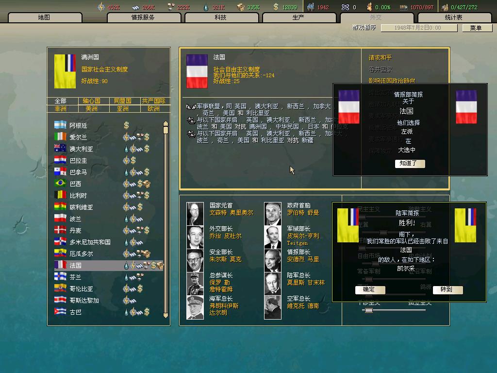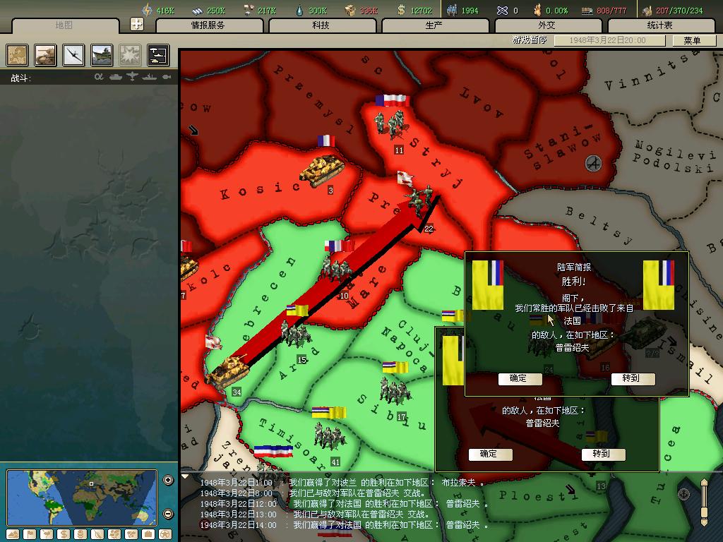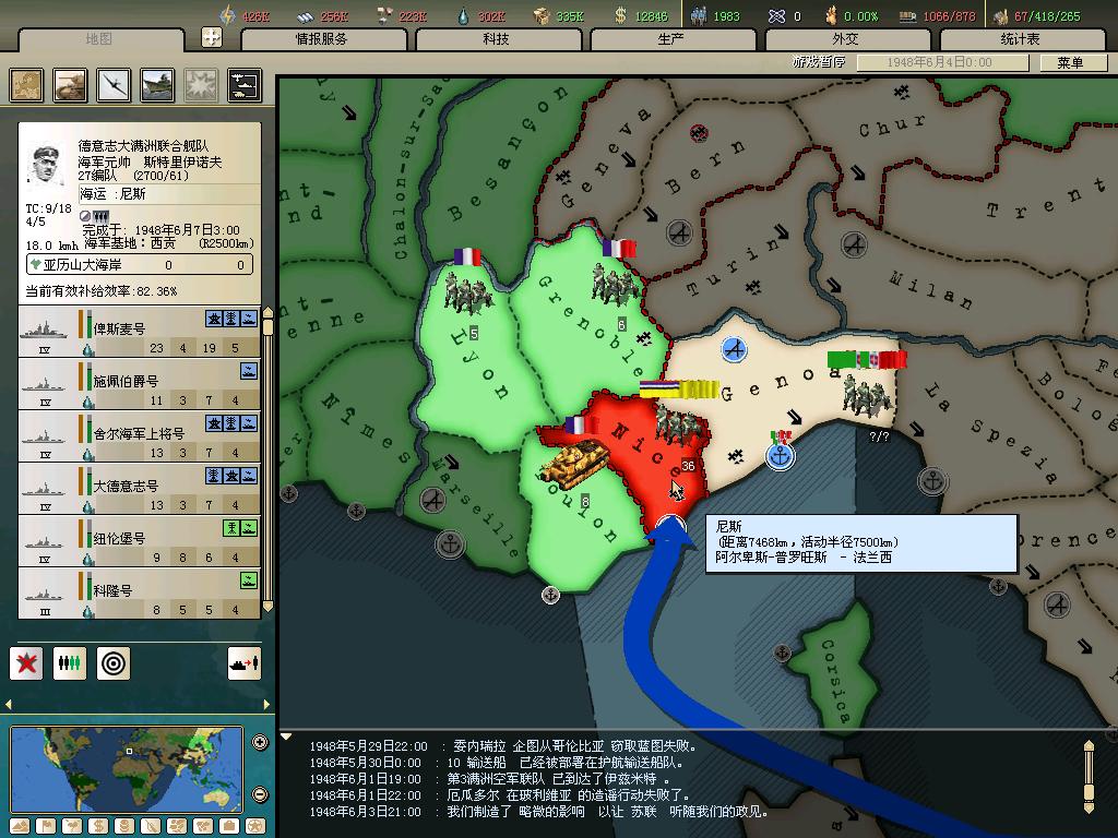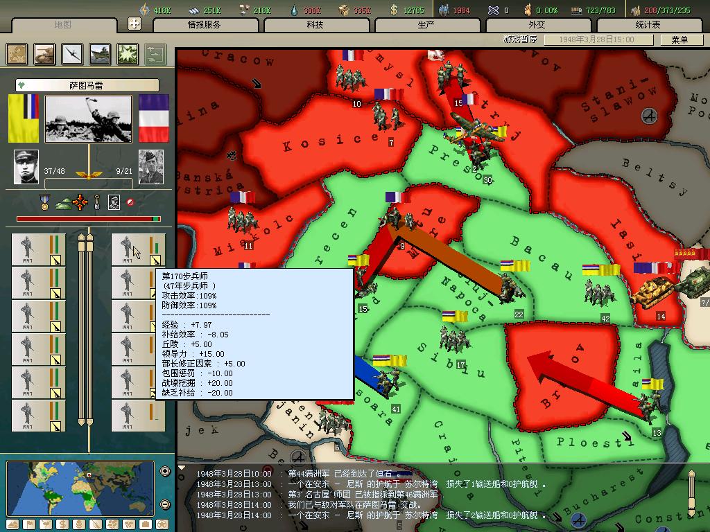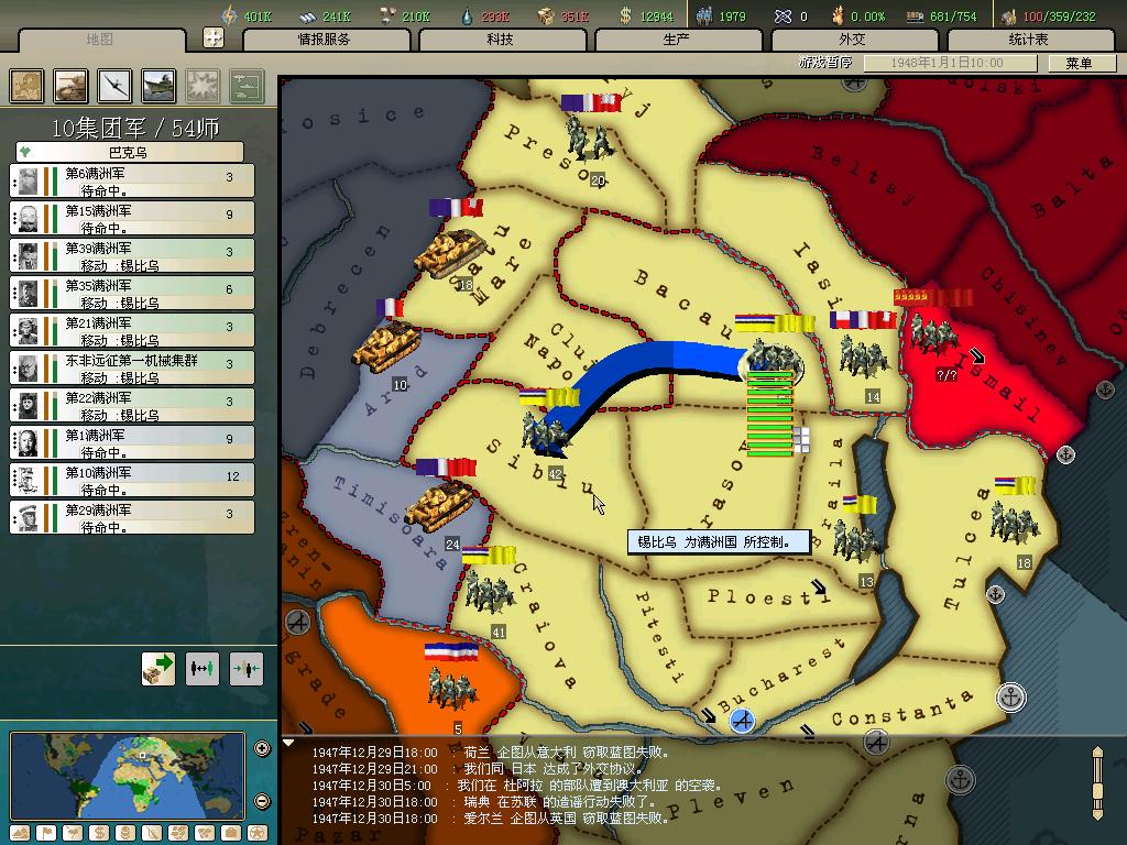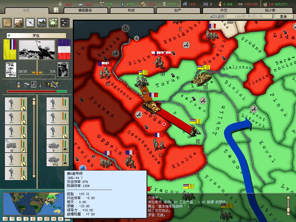 标题: DA1.3原版36满州国娱乐战报, 已更新至:1948年夏季 中日满轴心对抗英法美同盟 欧洲反攻势如破竹 攻陷华沙 吞并波兰!
