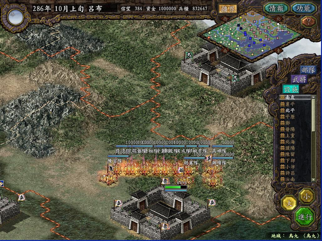 那个长安之战当时玩的时候,总是不由自主的想起汉中剧本那种三面夹攻的情景,如果敌军同时攻打我两个城,我就根本没办法从周围地方送援军过去(人手不够,守城都勉强凑合),而且守城的时候一个城最多留下7个将(两个城都在打,如果每个城8个将以上的话,另一边就没法守了),这样7个人还要有一个守城,6个人最多出两队,对付人家8,9队乃至十几队的攻城部队,实在是不好打。